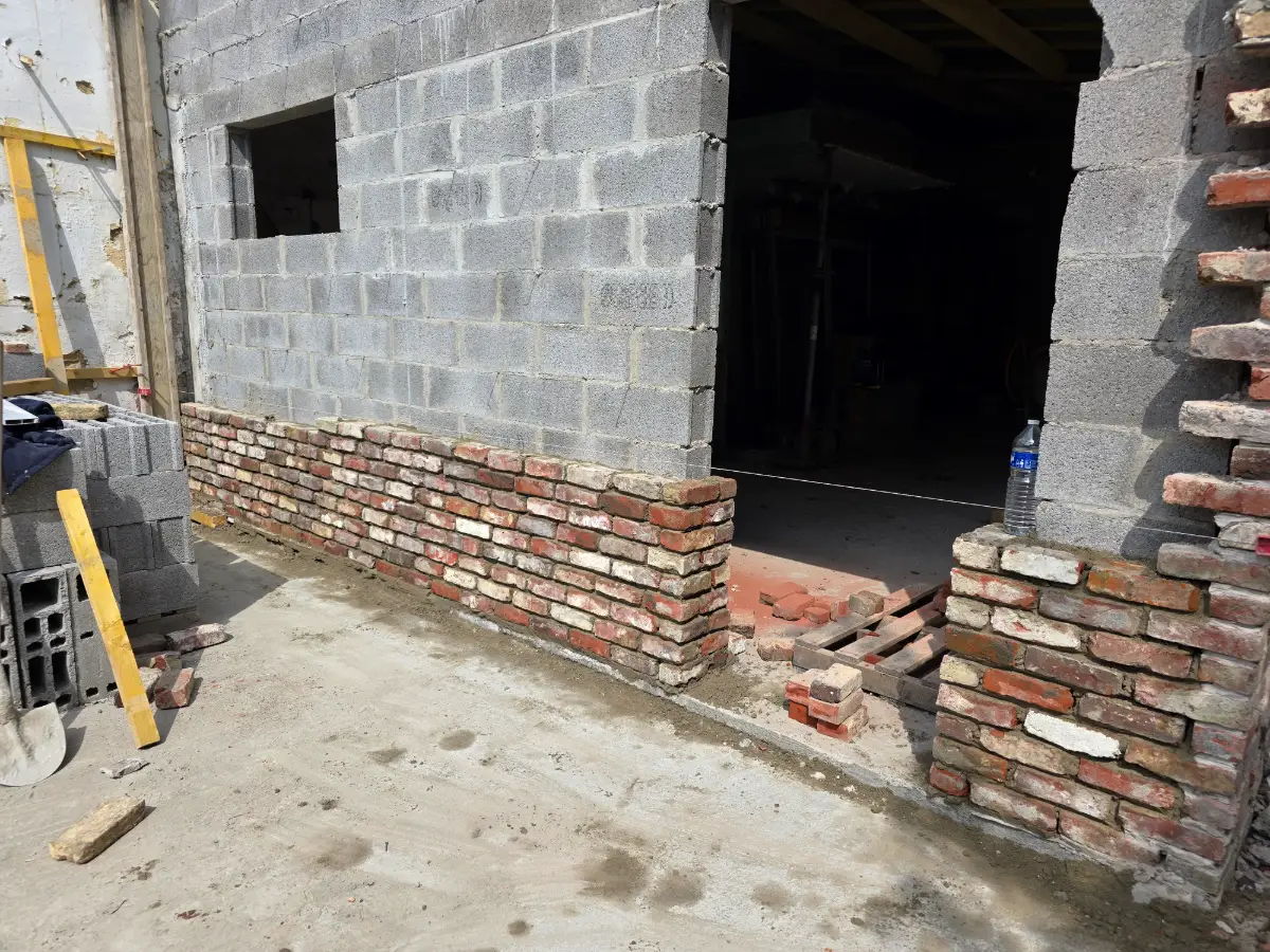réalisation d'une extension de 45m2 maçonnerie en parpaing et brique d'hem de récupération
