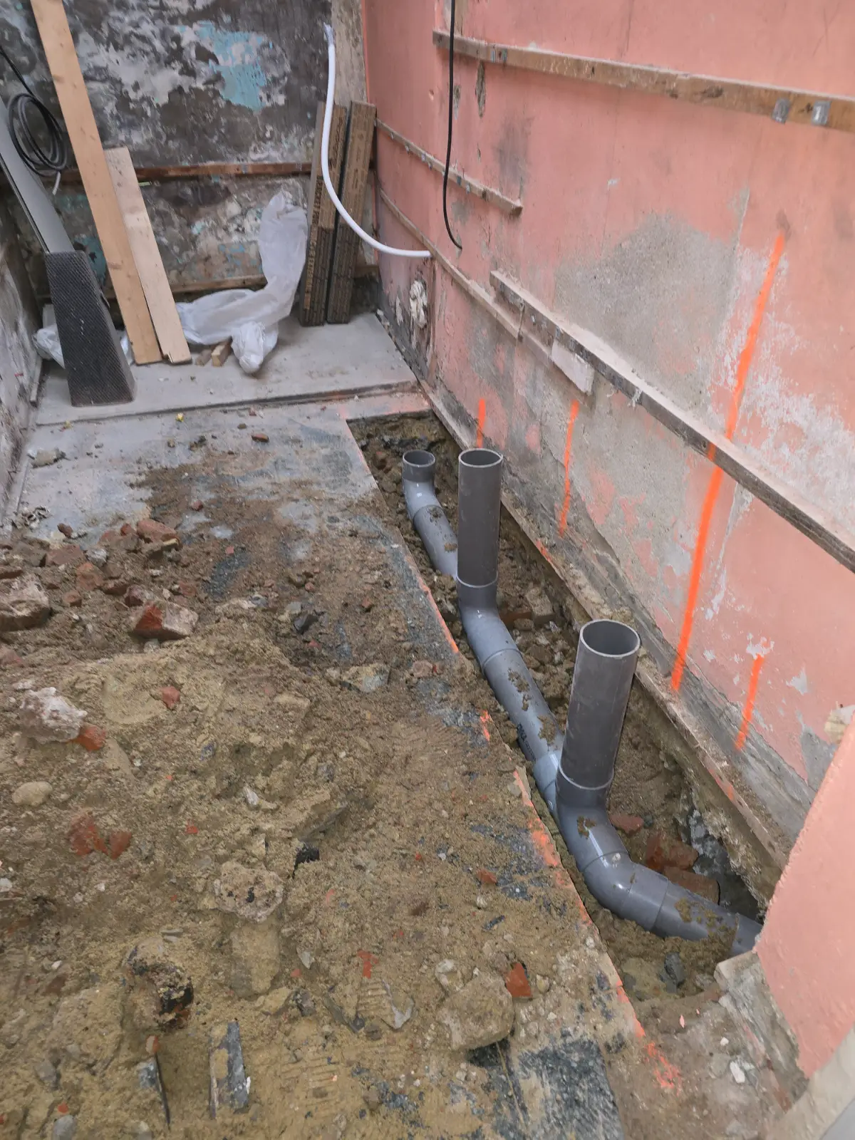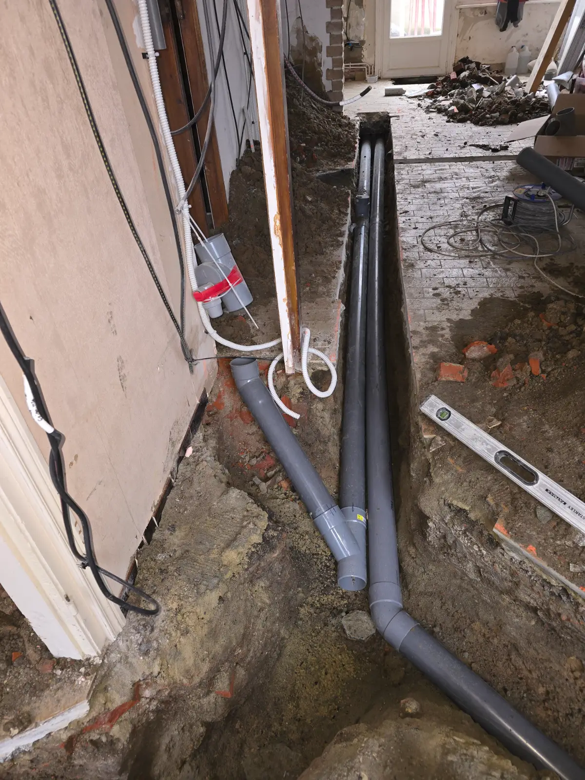 pose des tuyaux selon plan