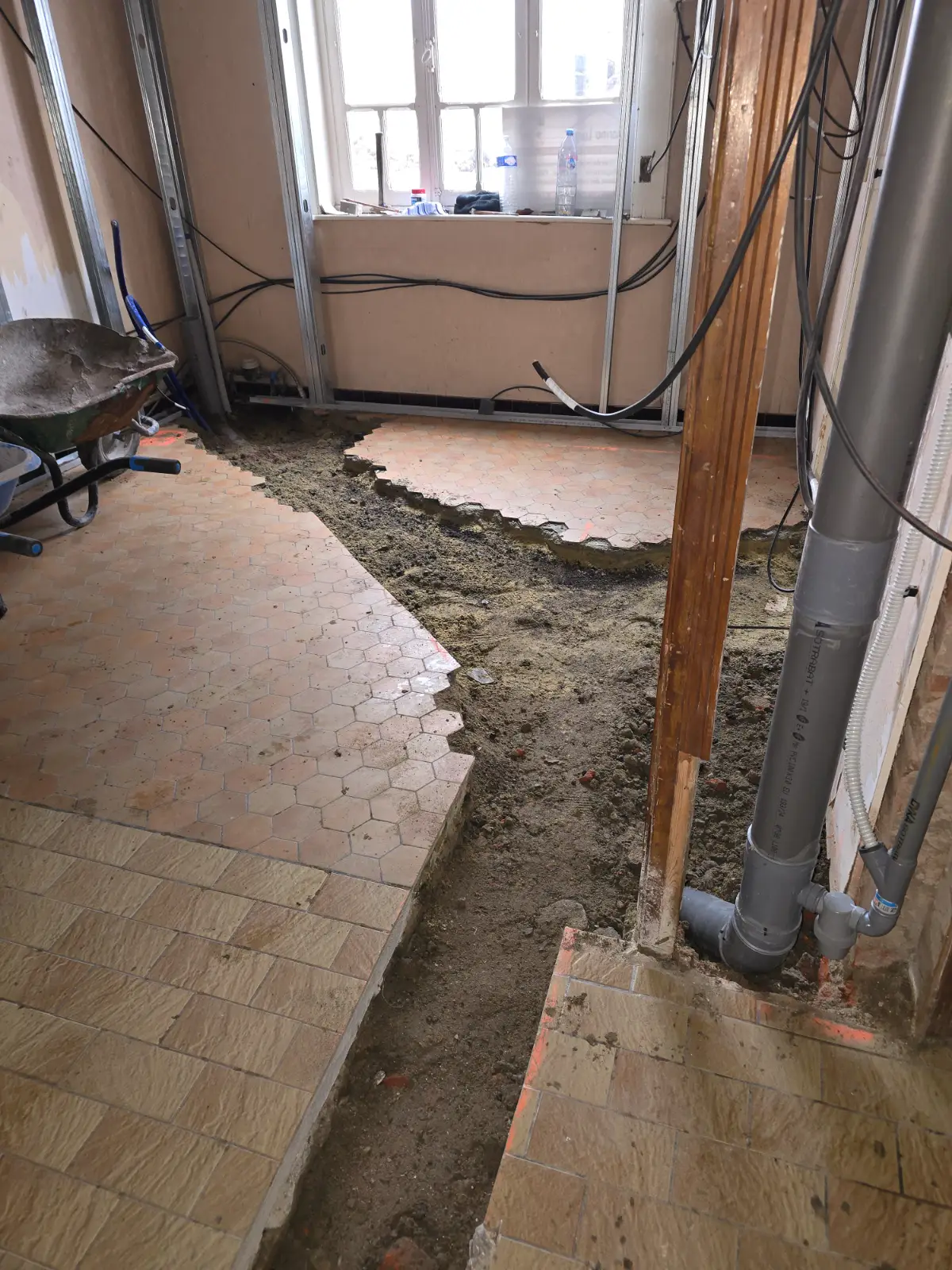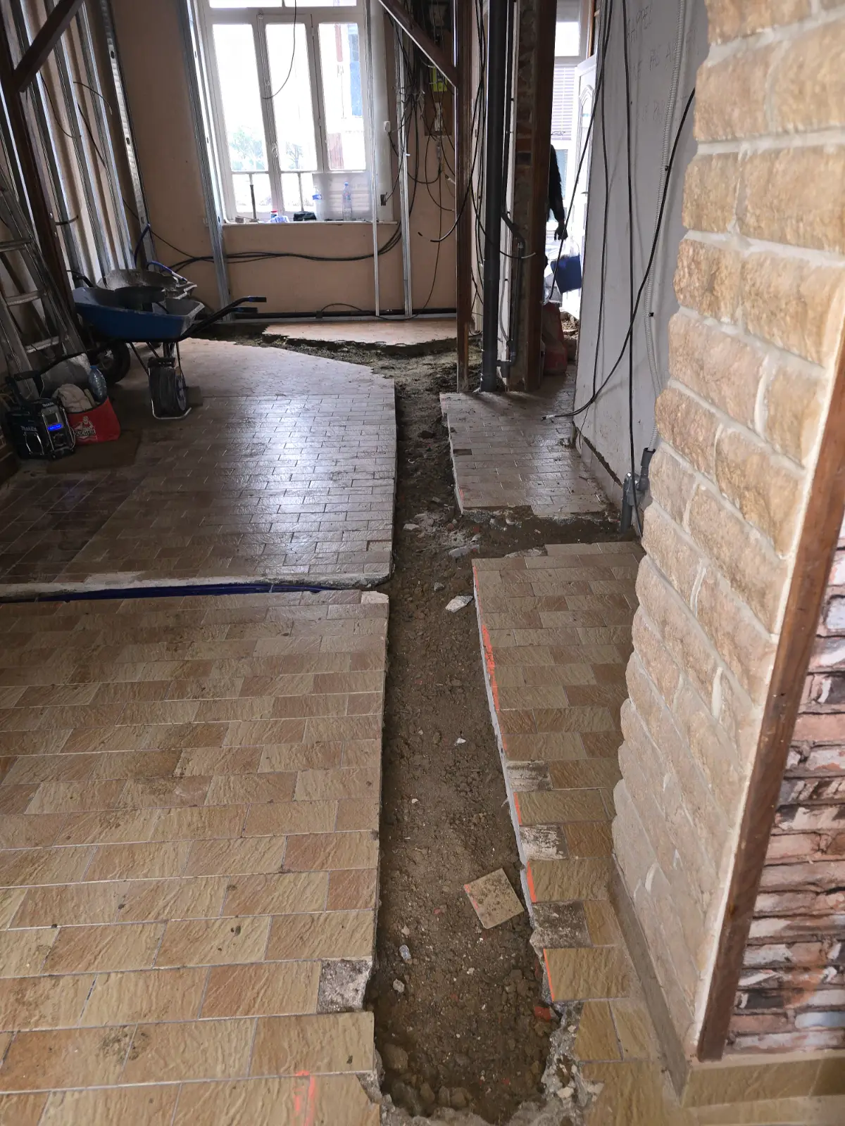tranché _percement de la façade a l extérieur(rue)